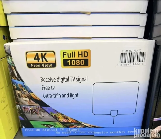 Digitalna TV antena HL-T2 4K Full HD. Uživajte u kristalno čistom digitalnom TV signalu uz digitalnu TV antenu HL-T2, dizajniranu za optimalan prijem bez mesečnih pretplata. Ova ultra tanka i lagana antena idealno je rešenje za svaki dom, vikendicu ili kampovanje.
