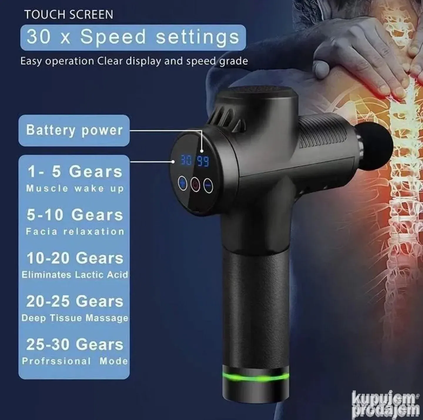 PROFI Digitalni masažer pištolj – 30 brzina i brutalna snaga!
