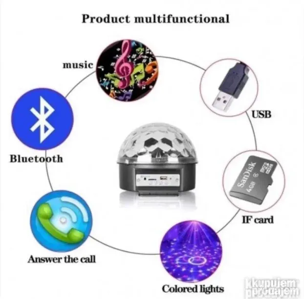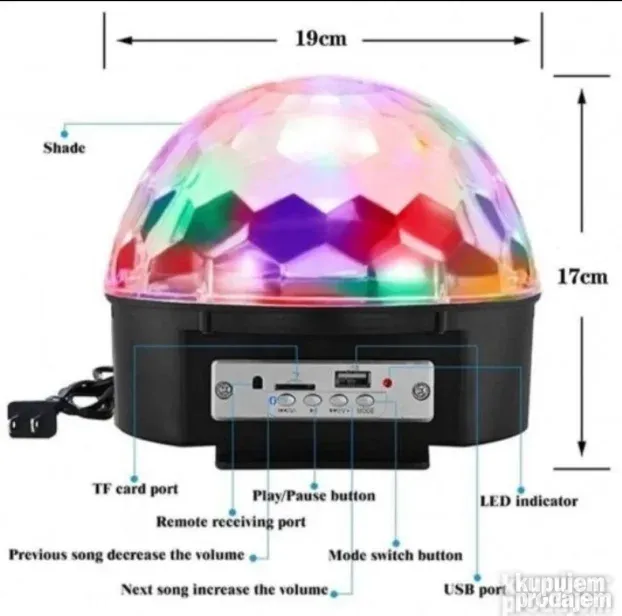Ova DISKO KUGLA stvara spektakularan light show sa RGB LED svetlima. Idealna je za bendove, kućne proslave, klubove, kafice i dečije igraonice.