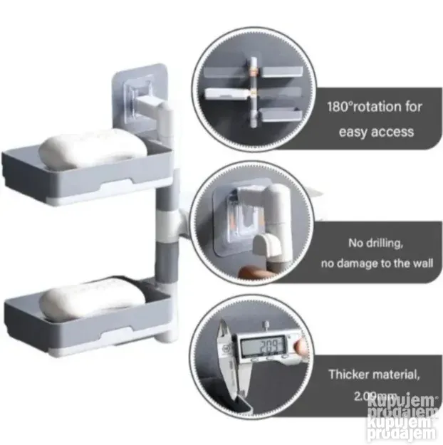 Ovaj držač kombinuje praktičnost i funkcionalnost, štedi prostor i olakšava organizaciju u kupatilu. Rotacija od 180° i multifunkcionalna upotreba čine ga idealnim za svakodnevnu upotrebu.