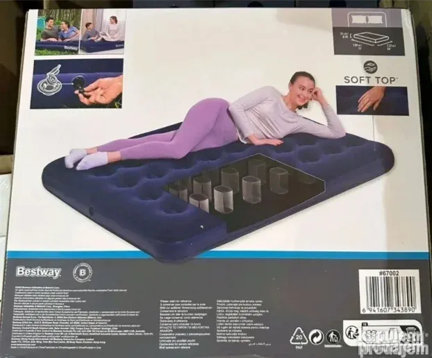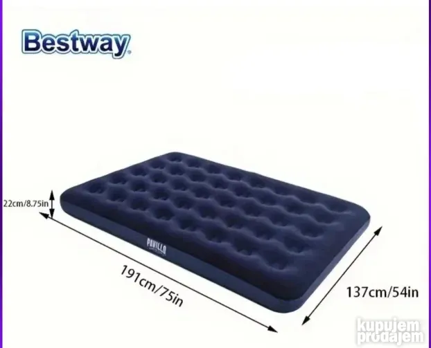 - Dimenzije naduvanog dušeka: Dužina 193 cm, Širina 137 cm, Visina 22 cm