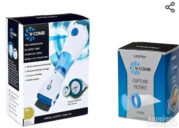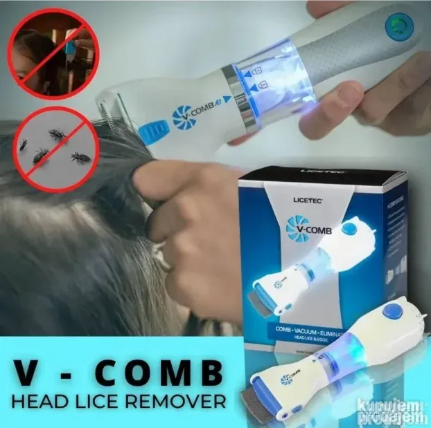 Ovaj električni češalj omogućava efikasno uklanjanje vaški i gnjida bez hemikalija i pesticida, što ga čini bezbednim za celu porodicu. V-comb 2u1 istovremeno češlja i vakuumom skuplja vaši i gnjide u osvetljenom jednokratnom filteru, što omogućava pregledan i higijenski tretman. Aparat ne oštećuje teme glave i može se koristiti i za kućne ljubimce. Zaobljeni zubi od nerđajućeg čelika sa podesivim uglovima prilagođavaju se dugoj ili kratkoj kosi. Odobren od strane FDA, ovaj češalj predstavlja najnapredniju prirodnu tehnologiju za uklanjanje vaški.