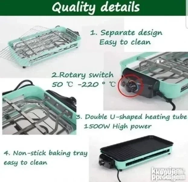 Snažan električni roštilj bez dima od 1500W za savršeno grilovanje u kući i van nje.