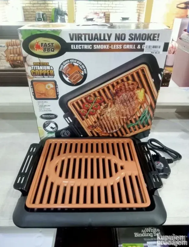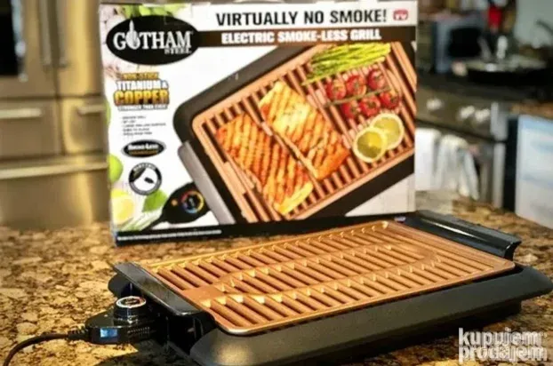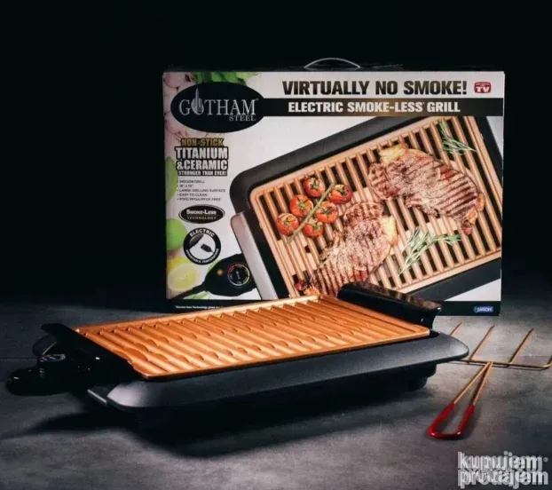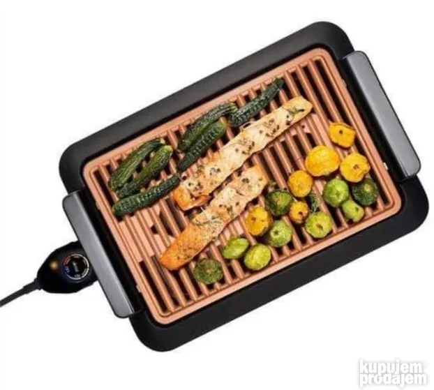 Ovaj električni roštilj omogućava ravnomerno pečenje sa kontrolom toplote. Temperaturni brojčanik održava temperaturu na celoj površini. Keramička resetka kombinuje titan i glatku keramiku, što smanjuje ogrebotine i oštećenja. Dim je minimalan jer resetka hladi ulje i masnoću.