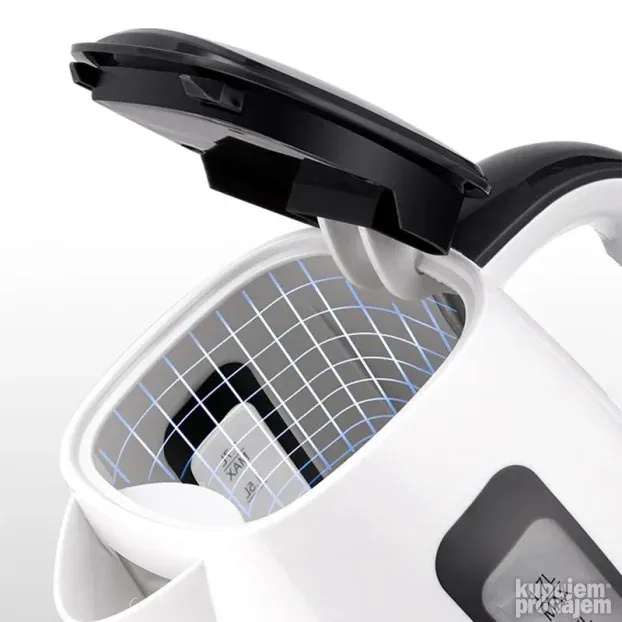 Stakleno kućište od borosilikatnog stakla je izdržljivo i otporno na mrlje. Plava LED lampica unutar kuvala osvetljava vodu dok se greje.
