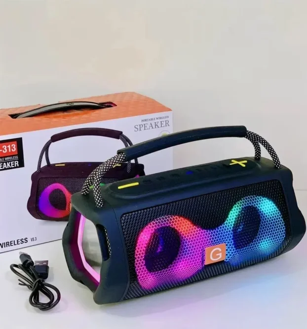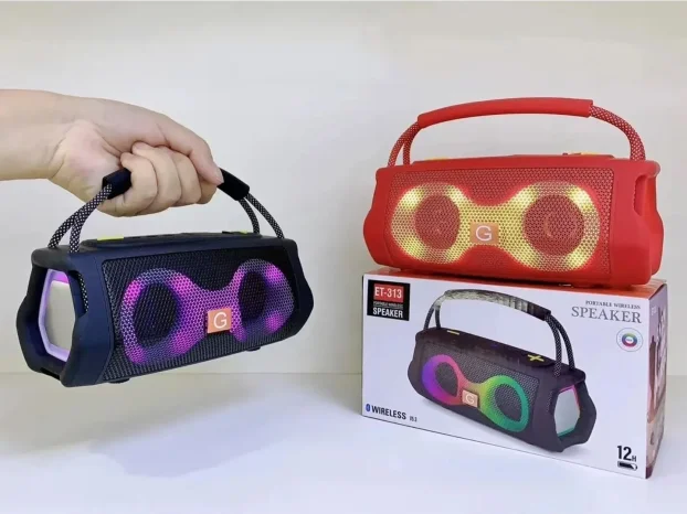 Unesite ritam u svoj život uz ET-313 Bluetooth zvučnik sa LED osvetljenjem – savršen spoj snažnog zvuka, modernog dizajna i praktičnih funkcija. Idealan je za kućnu upotrebu, druženja ili izlaske na otvorenom.