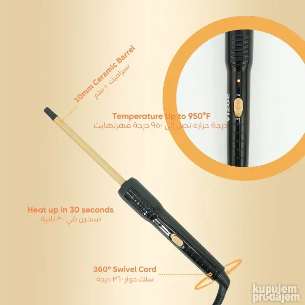 Prečnik od 10mm idealan je za sitne i guste lokne. Grejni deo dužine 16 cm omogućava lako oblikovanje i kraćih i dužih pramenova.