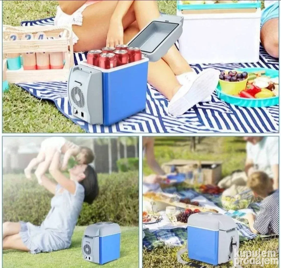 Frizider za auto 12V – praktičan prenosivi frižider i grijač zapremine 7.5 litara. Radi na 12V, pogodan za sva vozila sa 12V punjačem. Idealno rešenje za izlete, ribolov i putovanja. Može da hladi piće i hranu tokom leta, a i da greje kafu ili čaj u hladnim danima. Kompaktan i praktičan, sa crnim poklopcem na kojem može stati 3 limenke. Dolazi u originalnoj kutiji.