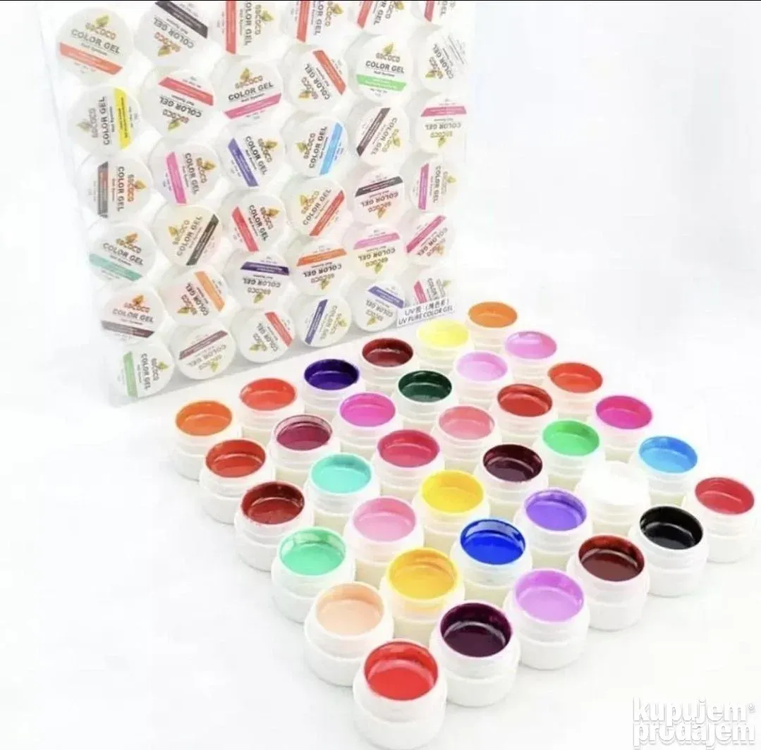 Profesionalni set gelova za nokte od 36 različitih boja – savršen izbor za manikir kod kuće ili u salonu. Svaka boja dolazi u pakovanju od 5 ml, sa gustom pigmentacijom, odličnim prekrivanjem i dugotrajnom postojanošću.
