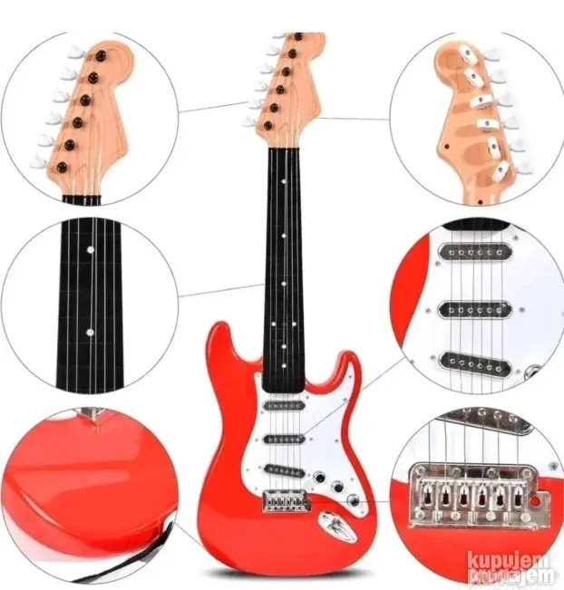 Ova električna gitara je savršena za male muzičare. Pruža zabavu i učenje melodija, razvija kreativnost i motoriku deteta.
