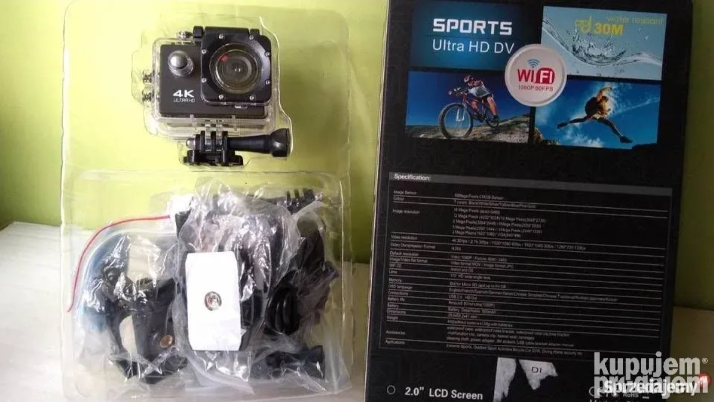 Odlična go pro akciono-sportska 4K UltraHD kamera za sjajne video-snimke, fotografije, audio-snimke iz vazduha, snimke pod vodom, u toku exstremnih sportova, sky-divinga, surffinga, biciklizama, auto/motociklizma.