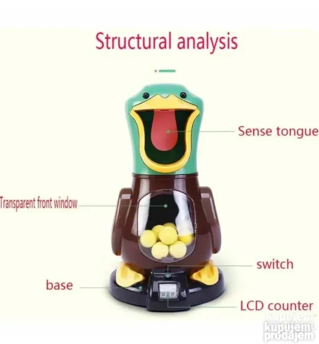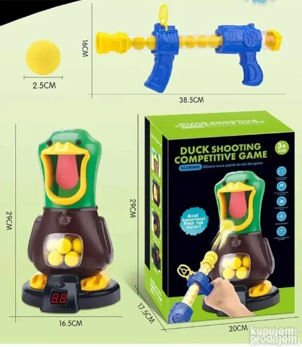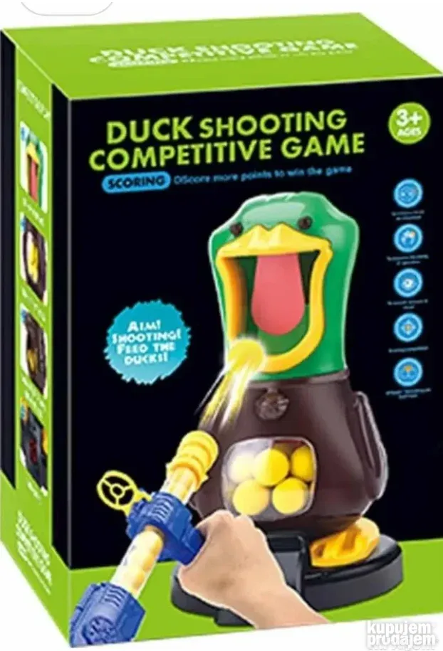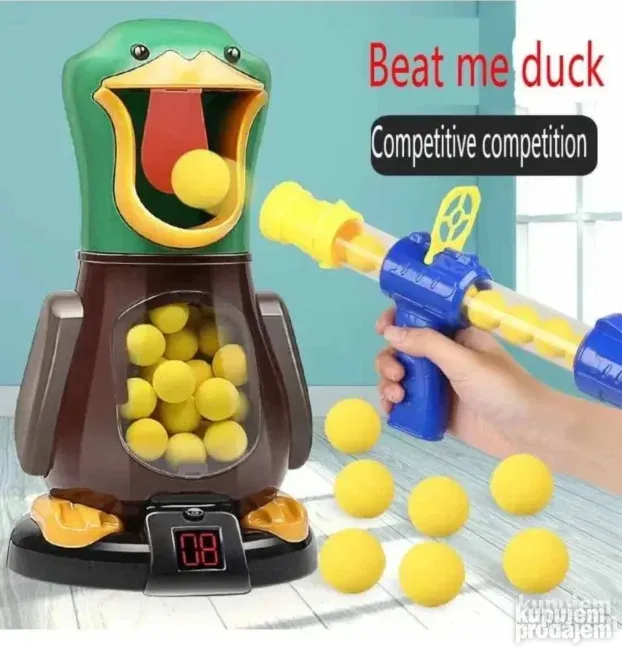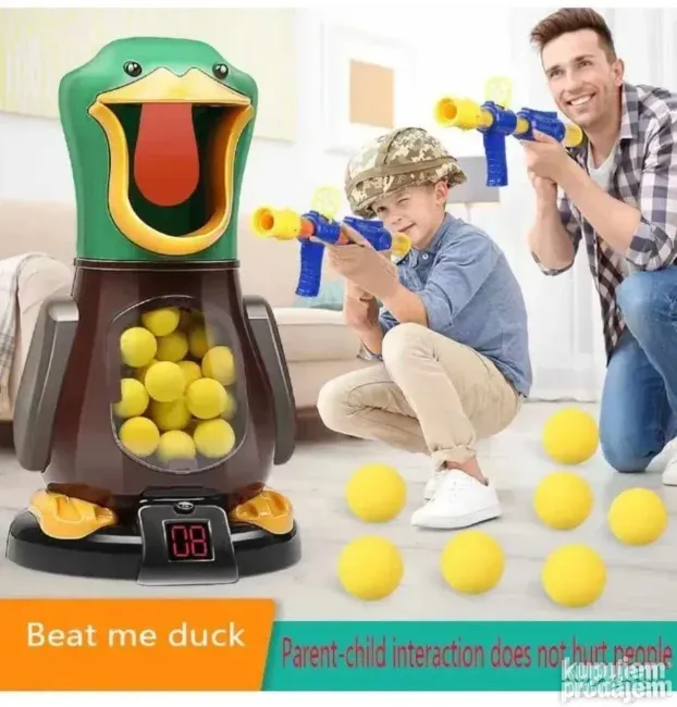 Unesite uzbuđenje takmičenja u svoj dom uz interaktivnu Igru lov na patke! Ova zabavna igra sa pucanjem omogućava mališanima da testiraju svoju tačnost, preciznost i nauče fer konkurenciju, dok pokušavaju da pogode usta patke mekim kuglicama.
