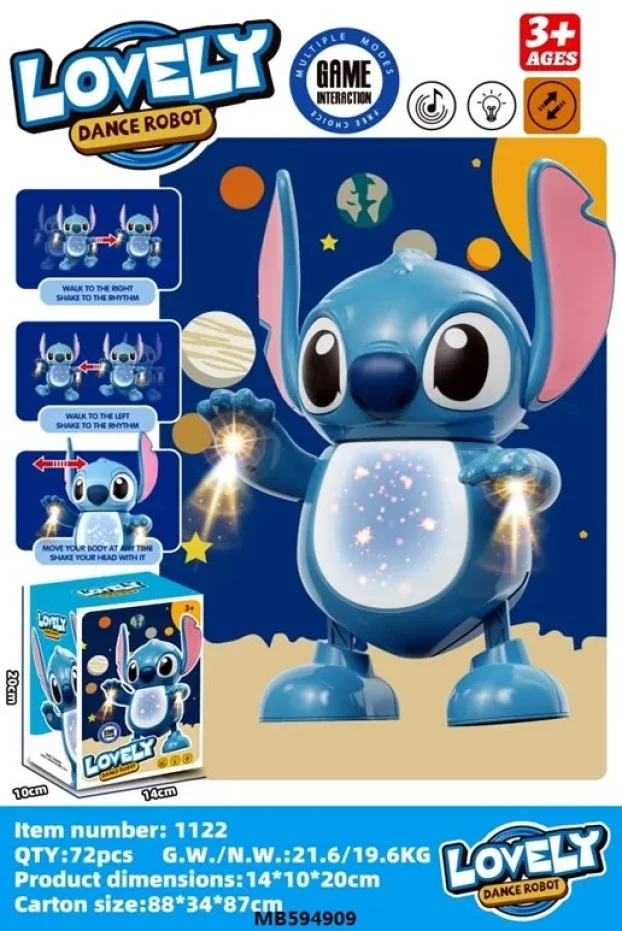 STITCH INTERAKTIVNA IGRAČKA LOVELU PLESNI ROBOT je savršen poklon za svako dete koje voli ovog veselog Diznijevog junaka. Ova igračka nije samo plišana figura – ona je pravo malo remek-delo zabave sa svetlosnim, zvučnim i pokretnim efektima. Pomiče se ritmički prateći melodiju, pružajući sate zabave.