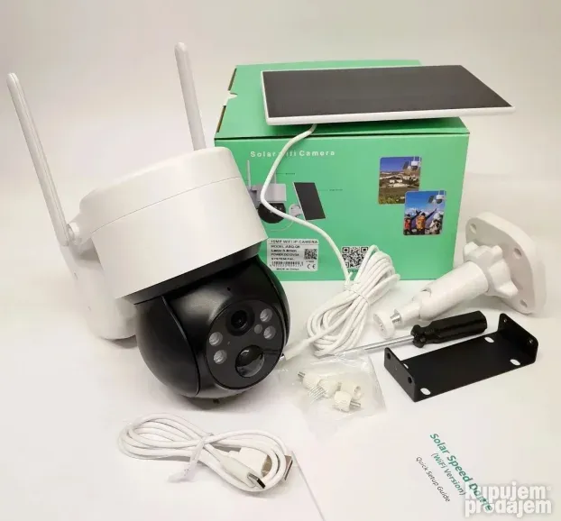 • U paketu: 1 WiFi solarna kamera, 1 solarni panel, 1 nosač, 1 uputstvo