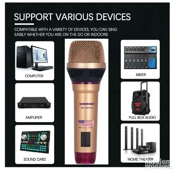 JBL 99S (REPLIKA) je dinamički žični mikrofon dizajniran za vokale, karaoke, porodična okupljanja i scenske nastupe.