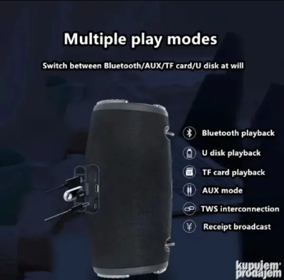 Sa dva snažna zvučnika od po 20W i litijumskom baterijom kapaciteta 10000mAh, pruža realnih 4–5 sati slušanja omiljenih pesama.