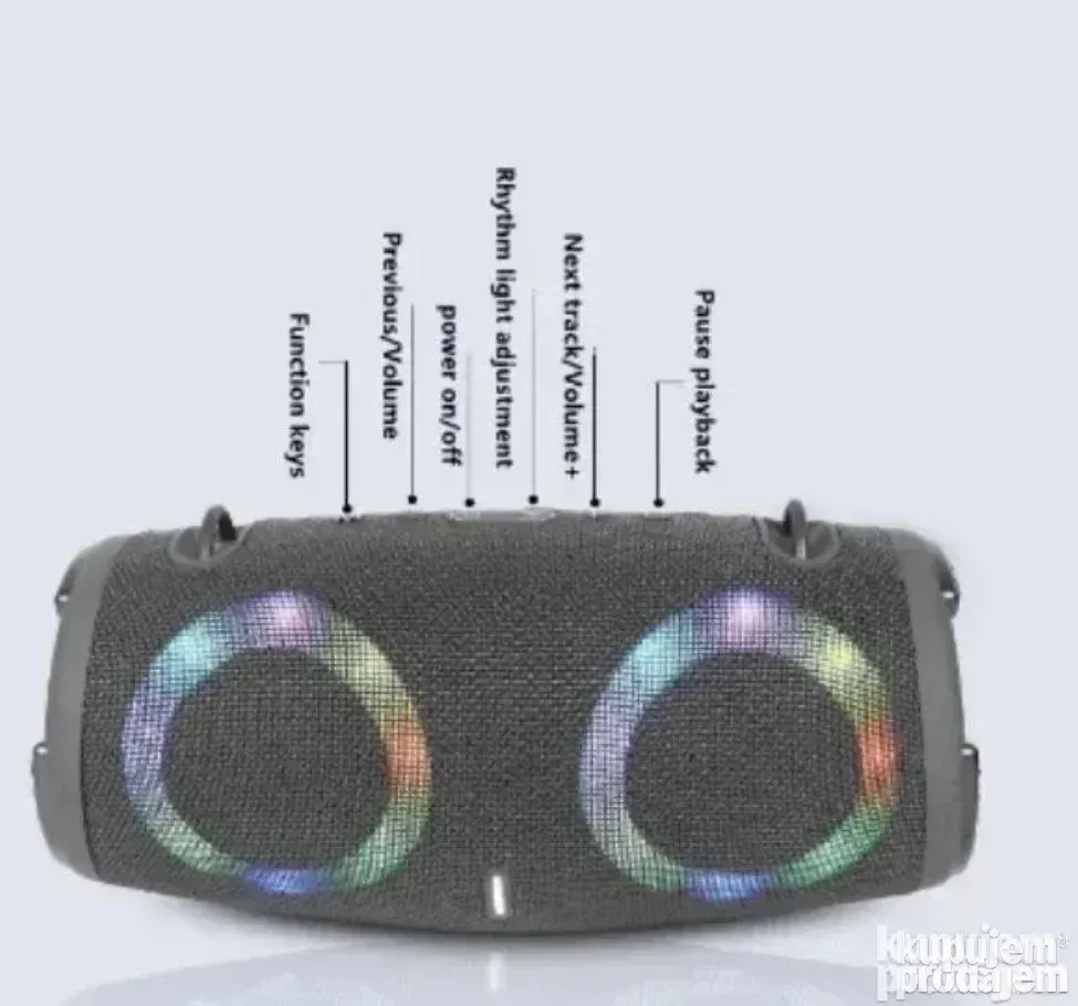 Zahvaljujući LED osvetljenju, ovaj zvučnik postaje atraktivan dodatak svakom okupljanju – bilo da ste kod kuće, u parku ili na plaži.