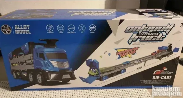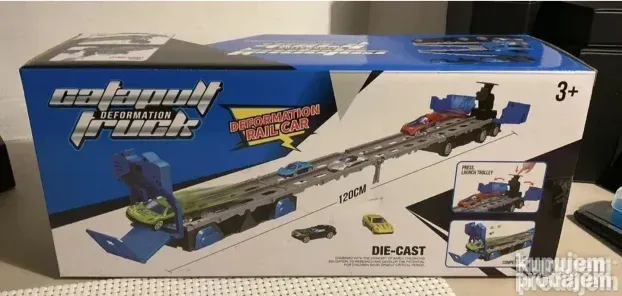 Ovaj kamion katapult donosi uzbuđenje trkačke staze u vreme igre. Set uključuje šest metalnih automobila od livenog gvožđa. Kamion je opremljen kolicima za lansiranje, što omogućava brze i uzbudljive trke.