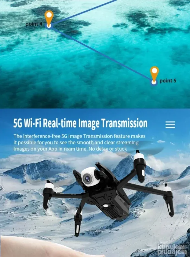 Opremljen GPS-om, Brushless motorom i 5G WiFi prenosom slike.