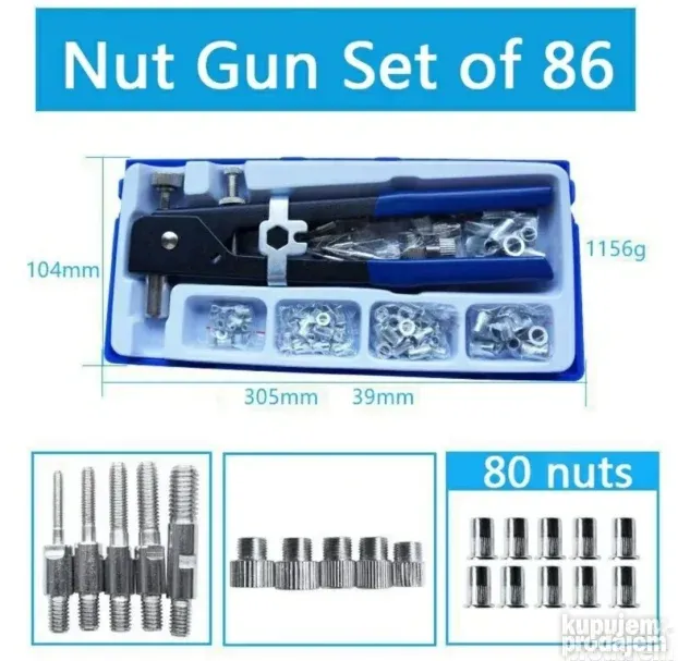 Klesta za pop nitne dolaze u kompletu od 86 delova. Pogodna su za popravku automobila, prikolica i nameštaja. Idealan alat i za izradu čamaca ili popravku alata i poljoprivredne opreme. Komplet je kompaktan i lako se koristi. Savršena za profesionalce i hobiste.