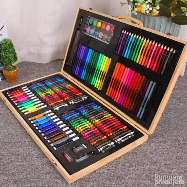Deca razvijaju kreativnost i maštu. Set je praktičan za školu i kod kuće. Sve boje i pribor u jednom koferu. Pogodno za crtanje, bojenje i kreativne projekte.