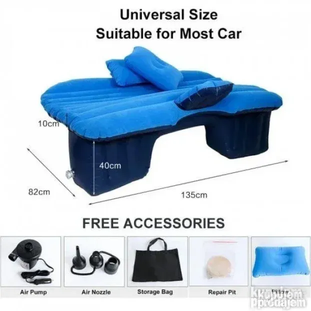 Pretvorite zadnji deo automobila u praktičan i udoban krevet. Dušek na naduvavanje dolazi sa pumpom na 12V. Idealno za odmor nakon dugog puta ili zabave. Dimenzije su 135×88 cm, pa se lako uklapa u većinu automobila.