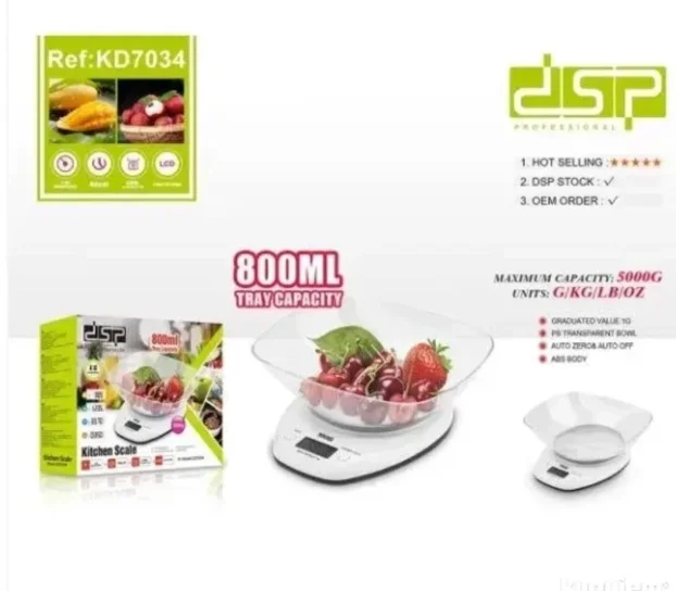 Ova kuhinjska vaga sa posudom od 800 ml pruža preciznost i praktičnost u vašoj kuhinji. Idealna je za merenje tečnih i suvih sastojaka prilikom kuvanja, pečenja ili pravljenja koktela. Digitalni ekran omogućava lako čitanje vrednosti, dok funkcija tare omogućava brzo resetovanje vage na nulu. Kompaktan dizajn olakšava skladištenje i upotrebu.