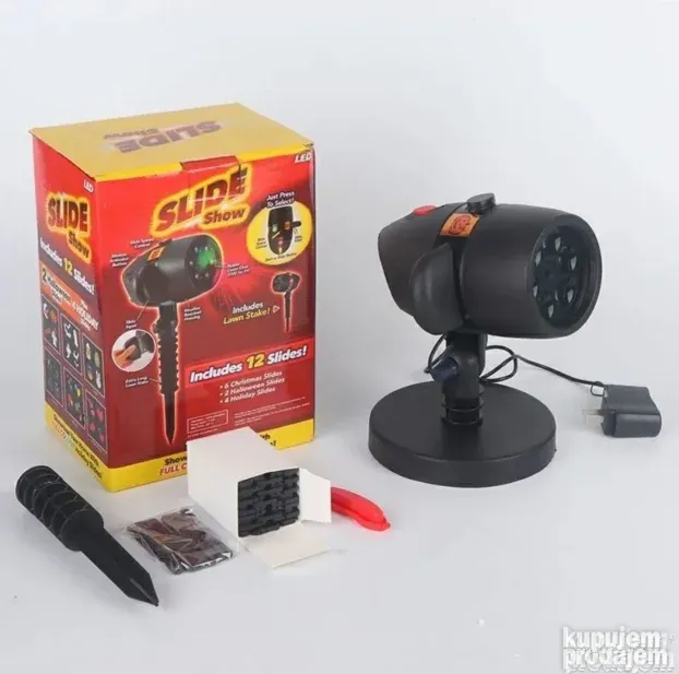 Laser projektor sa slajdovima je savršeno rešenje za dekoraciju vaše kuće, dvorišta, sobe ili bilo kog prostora u tren oka! Zahvaljujući 12 slajdova sa različitim temama i jednostavnoj upotrebi, ovaj laser projektor će pretvoriti svaku priliku u pravu svetlosnu čaroliju. Samo ga uključite, odaberite motiv i uživajte u raskošnom svetlosnom spektaklu! Nema više razvlačenja lampica – laser projektor je sve što vam treba!