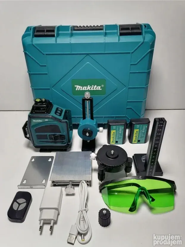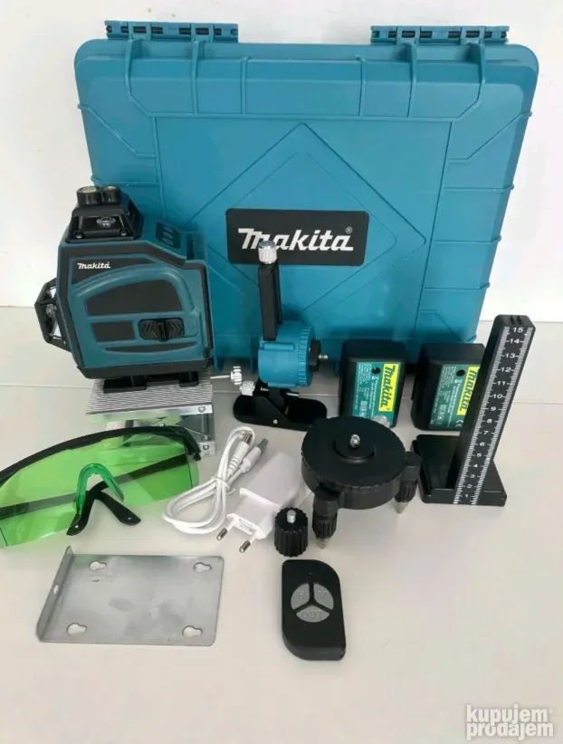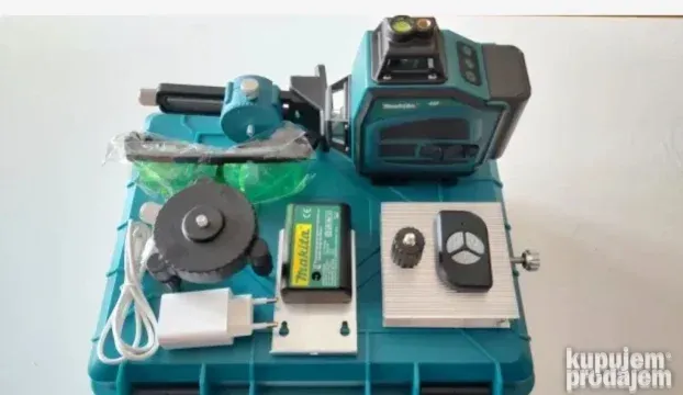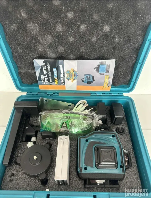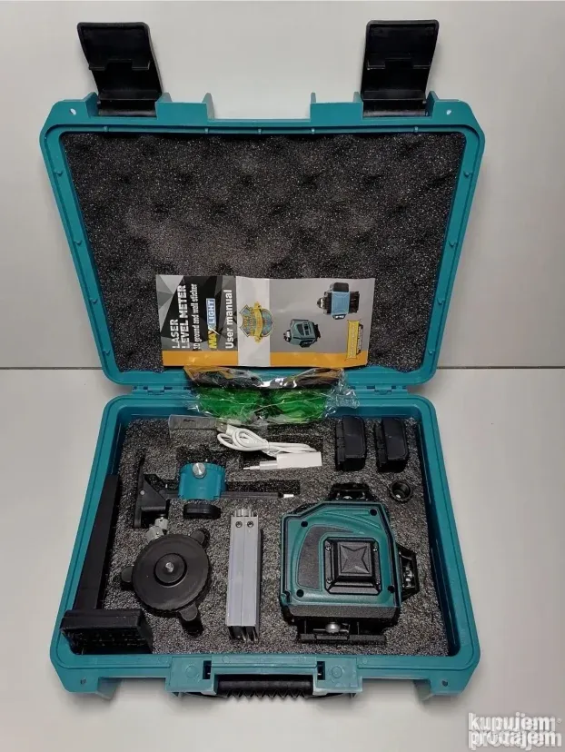 • U kompletu: laser, 2 baterije, punjač, mali tronožac, magnetni nosač, držač magneta, postolje sa promenom visine, adapter za veliki tronožac, zaštitne naočare
