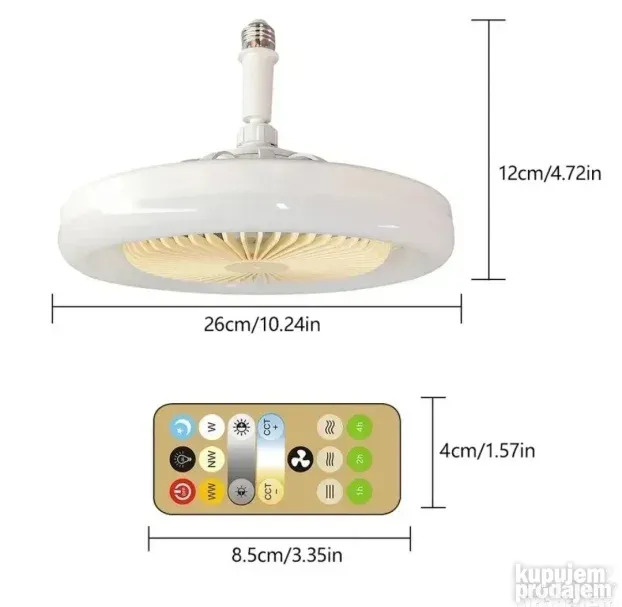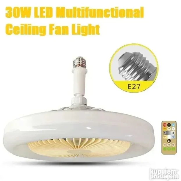 Ovaj LED luster se montira na standardno E27 grlo. Sijalica dolazi sa daljinskim upravljačem za kontrolu ventilatora. Ima tri jačine duvanja i svetlosnu snagu od 30W. Prečnik lampe je 260mm, a visina 120mm. Idealan je za sobe i radne prostore gde želite osvetljenje i cirkulaciju vazduha. Jednostavna montaža i jednostavno upravljanje čine ga praktičnim.