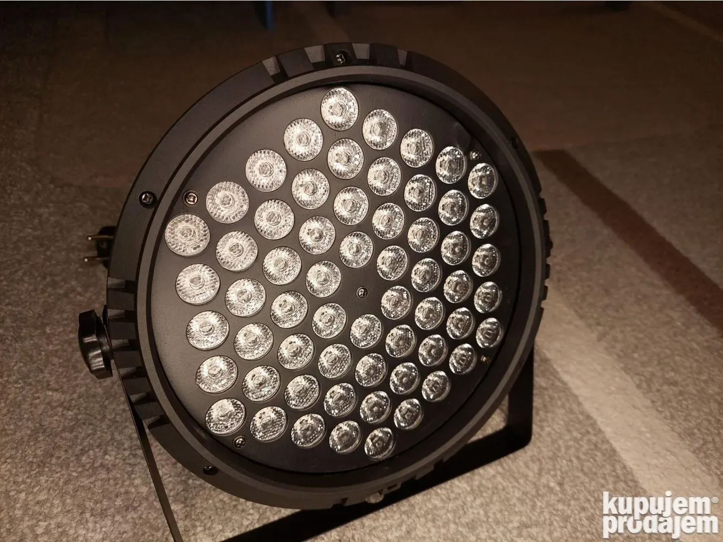 Kućište je čvrsto, kvalitetno i izdržljivo. Reflektor dolazi sa nosačem koji može da se postavi na pod, zid ili plafon. Snaga je 60 × 1W LED, što je realna i stabilna vrednost za ovu kategoriju rasvete.