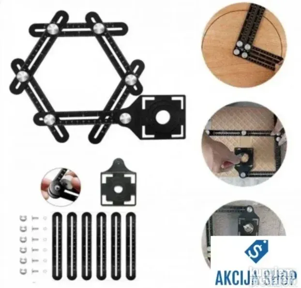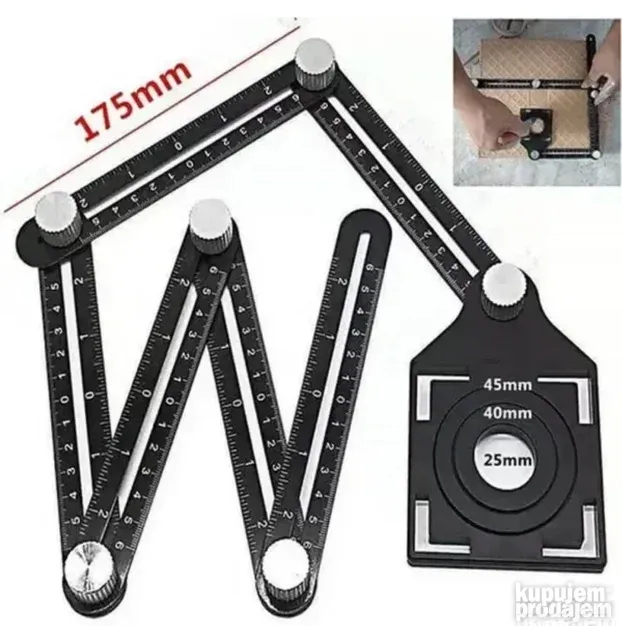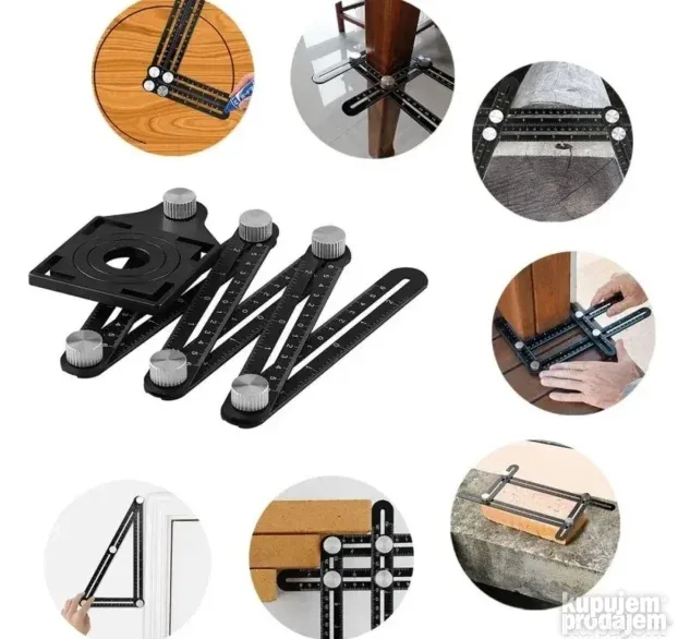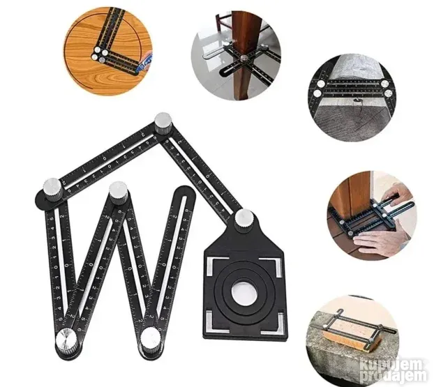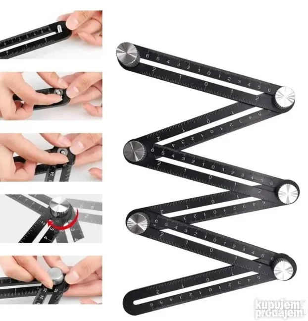 Ovaj lenjir olakšava merenje uglova na drvetu, keramici, gipsu i drugim površinama. Ima 6 metalnih dugmadi koja se podešavaju za željeni oblik. Centimetri na lenjiru omogućavaju brzo i precizno merenje. Idealan je za građevinske radnike, zanatlije i „uradi sam“ projekte. Napravljen je od aluminijuma i metala, otporan na koroziju i dugotrajan.