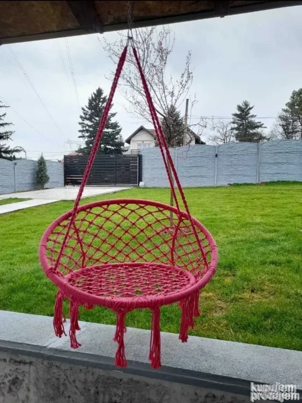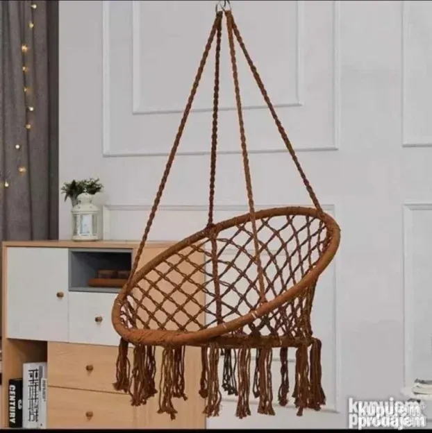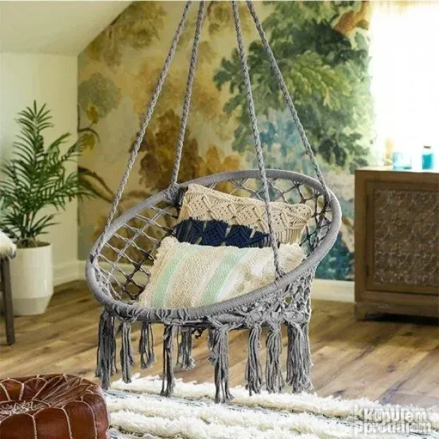 Ova viseća stolica kombinuje udobnost, kvalitet i stil. Ručno pletena i prenosiva, idealna je za relaksaciju i dekoraciju svakog prostora.