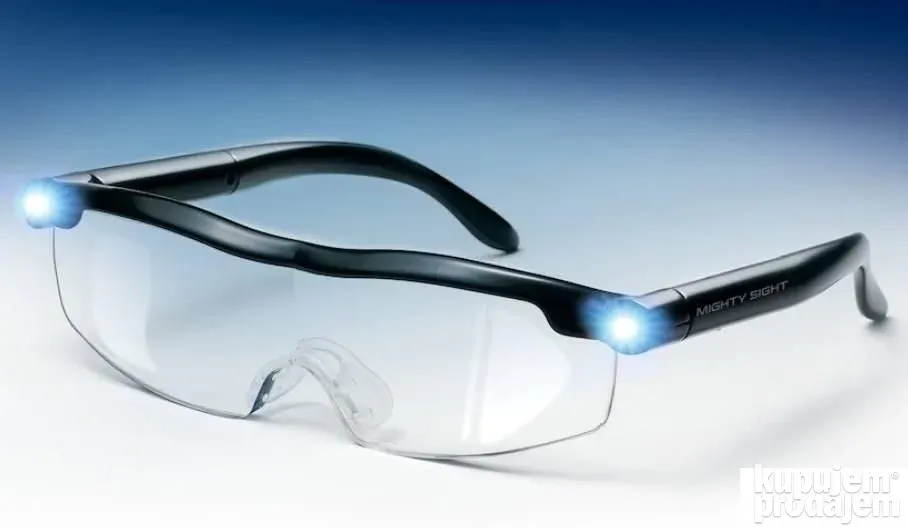 Mighty Sight naočare su savršeno rešenje za sve koji žele da vide sitne detalje bez napora. Ove naočare uveličavaju do 160% i imaju ugrađene LED diode koje osvetljavaju površinu ispred vas poput ličnih farova. Idealne su za čitanje, šivenje, popravke, rad sa elektronikom i sve druge precizne zadatke.