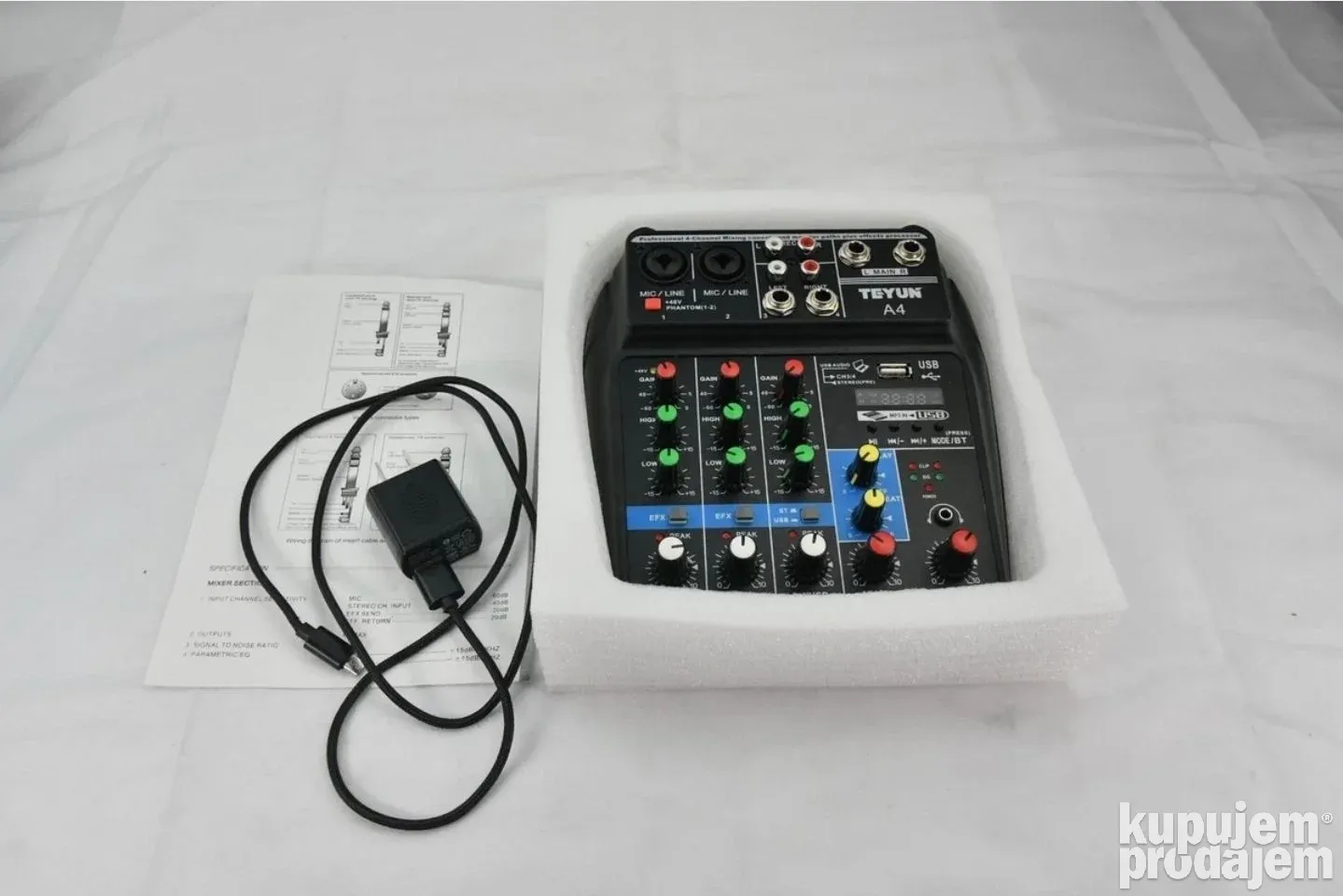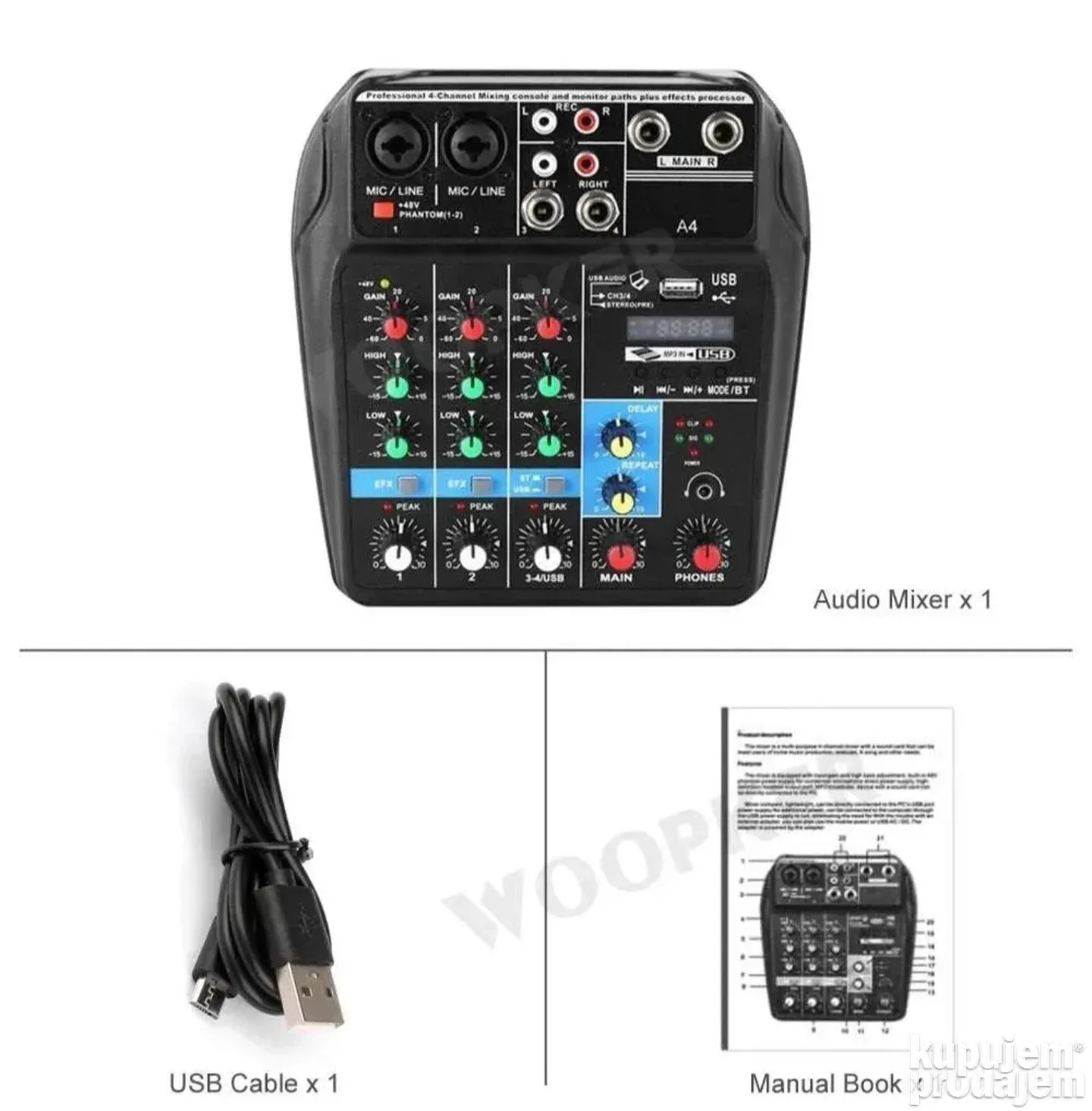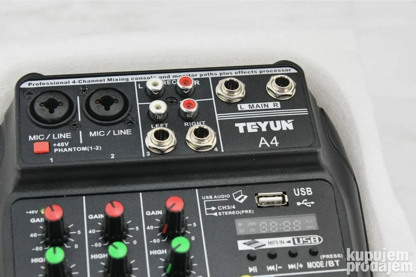 Profesionalna četvorokanalna mikseta USB Bluetooth je namenjena muzičarima, streamerima, DJ-evima i svima koji žele kvalitetan zvuk u kompaktnoj formi. Ova mikseta omogućava miksovanje više izvora zvuka, povezivanje sa računarom, snimanje, puštanje muzike i bežičnu Bluetooth vezu. Idealna je za studio, live nastupe, kućne žurke i profesionalne događaje.
