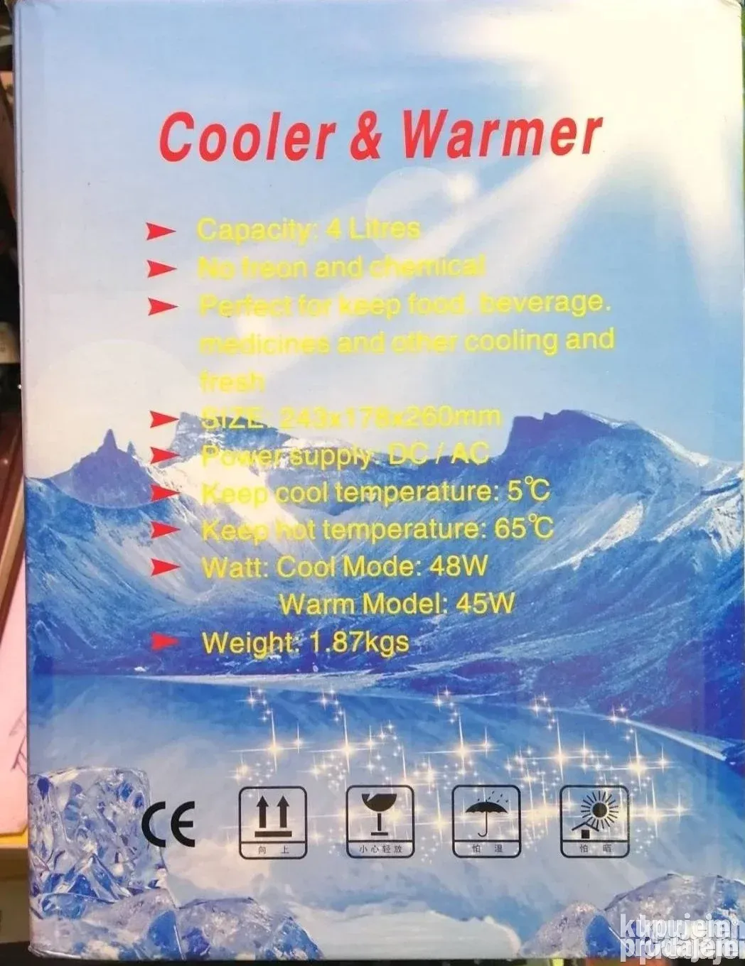 Mini frižider za auto sa kapacitetom 4 litra i 12V napajanjem. U kompletu dolazi kabl za napajanje. Može da hladi i da greje u temperaturnom opsegu od 5 do 65 stepeni.