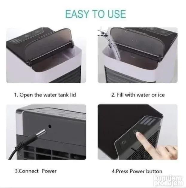 Mini klima ima 3 brzine hlađenja i tih režim rada, dok podesiva prednja rešetka omogućava kontrolu protoka vazduha. LED svetlo sa promenom boja osvetljava prostor, a možete ga i isključiti po želji.