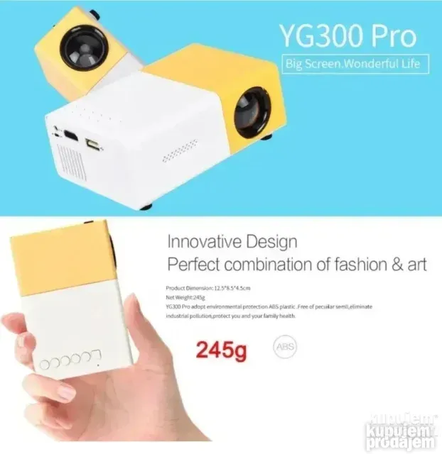 Uživajte u kućnom bioskopu gde god se nalazili uz ovaj praktičan mini LED projektor YG300. Ovaj prenosni uređaj donosi Full HD zabavu u Vaš dom ili na put, idealan za filmove, serije i utakmice.