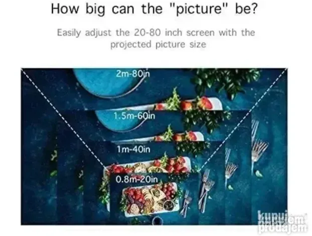 - ✔ Projekcija veličine slike od 24 do 80 inča