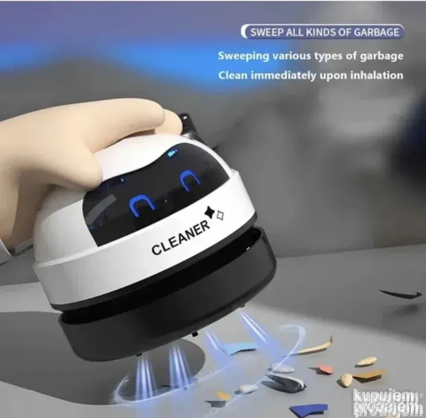 - Izuzetna Snaga Usisavanja: Uprkos maloj veličini, efikasno kupi sve sitne čestice, čineći vaš sto besprekorno čistim.