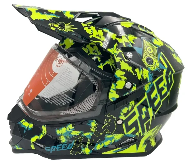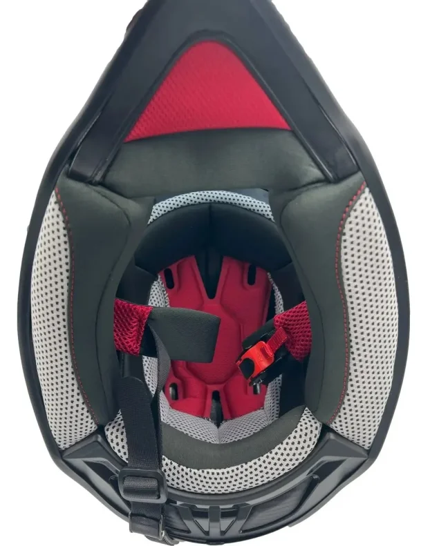 Ova motocross kaciga pruža maksimalnu zaštitu i udobnost. Integrisane naočare i vizir olakšavaju vožnju. Ventilacioni sistem omogućava bolju cirkulaciju vazduha. Usmerivač daha i zaštita za vrat povećavaju sigurnost. Brza kopča olakšava postavljanje kacige. Veličine dostupne od 56 do 62 cm.