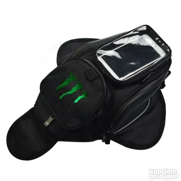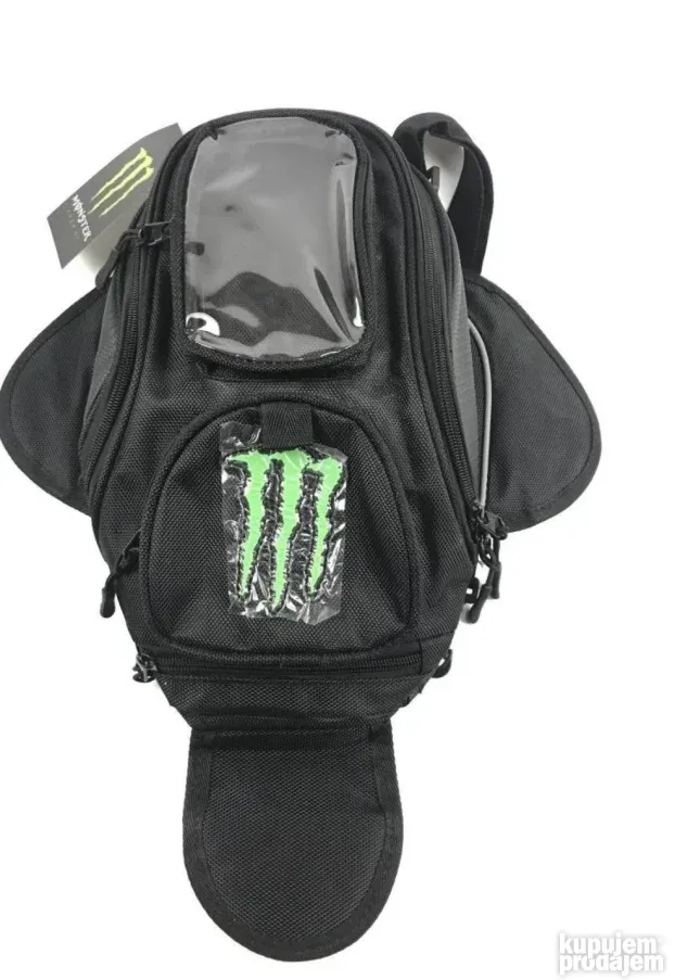 Ova moto torbica MONSTER se kači magnetima direktno na rezervoar motora. Vodootporna je i ima providnu komoru za telefon. Napravljena je od OXFORD tkanine i poliestera D1700. Torbica ima dve velike pregrade i dva manja džepa sa rajsferšlusom. Manji džep je providan, za mobilni telefon. Ultra jaki magneti na leđima drže torbicu stabilno, a dodatni kaiš omogućava čvrsto pričvršćivanje tokom vožnje.
