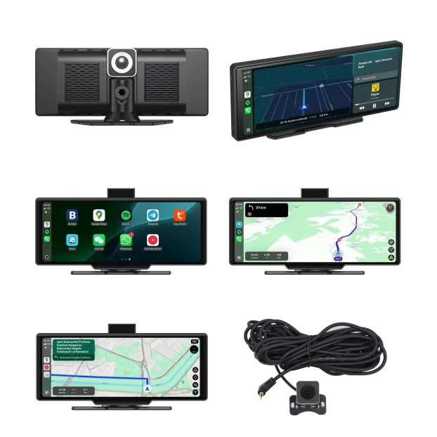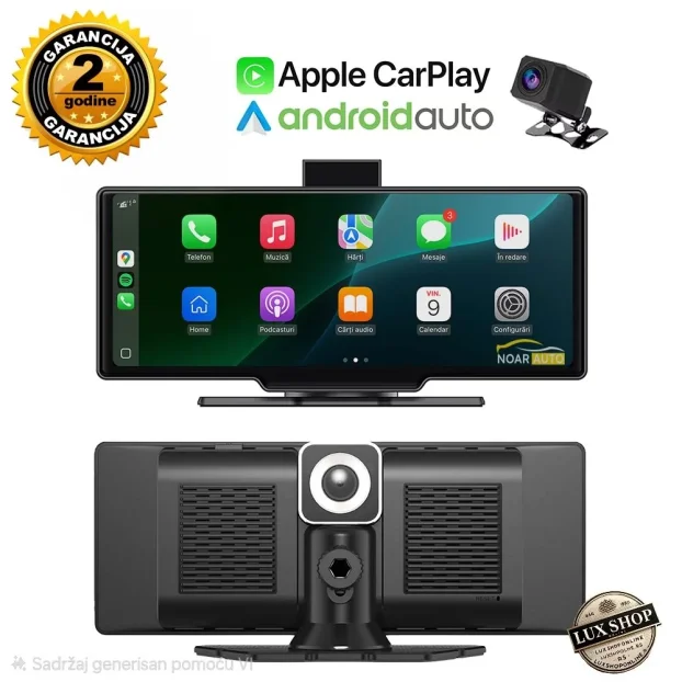 • ✔ Kompatibilnost sa Apple CarPlay i Android Auto – bežično povezivanje za brz pristup mapama, pozivima, porukama, Spotify-ju, Waze-u, Google mapama ili drugim aplikacijama.