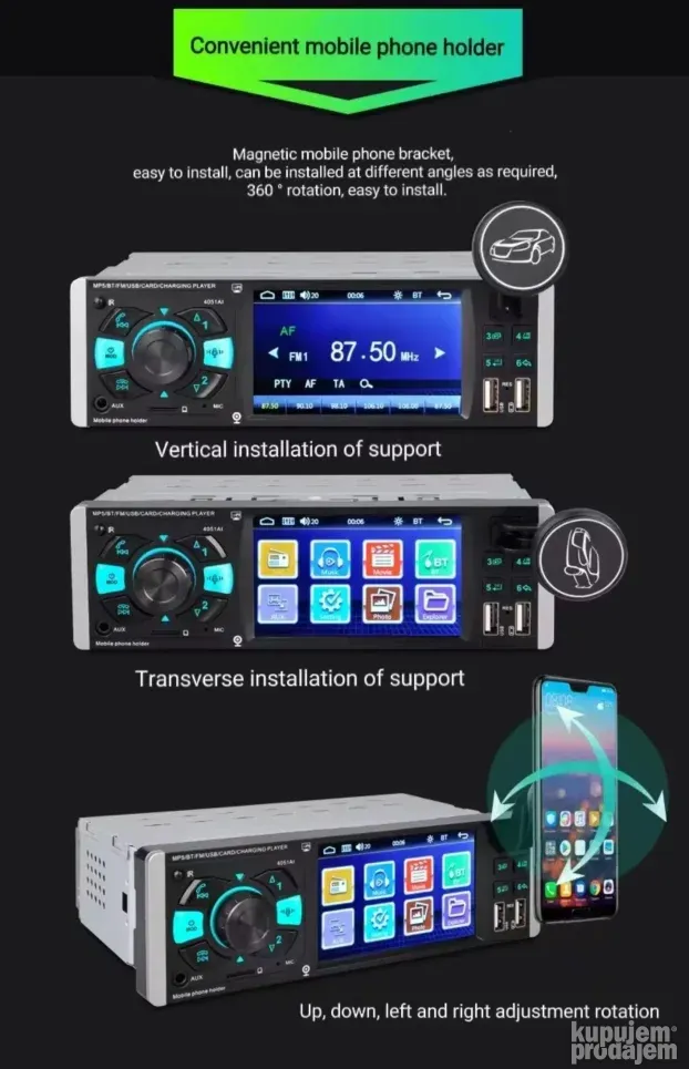 MP5 Multimedija sa držačem telefona – Muzika, video i hands-free u autu!