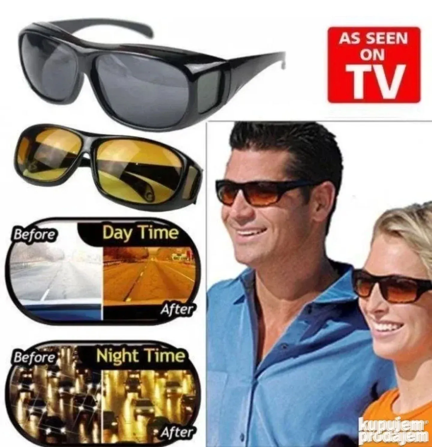 Ako vam smeta noćni odsjaj, refleksija sa mokrog asfalta ili jaka svetla u retrovizoru, ove naočare su pravo rešenje. U kompletu dobijate 2 para naočara: jedan za dnevnu, drugi za noćnu vožnju. Sočiva su specijalno oplemenjena i blokiraju odsjaj, poboljšavaju kontrast i čine sliku jasnijom u svim uslovima.
