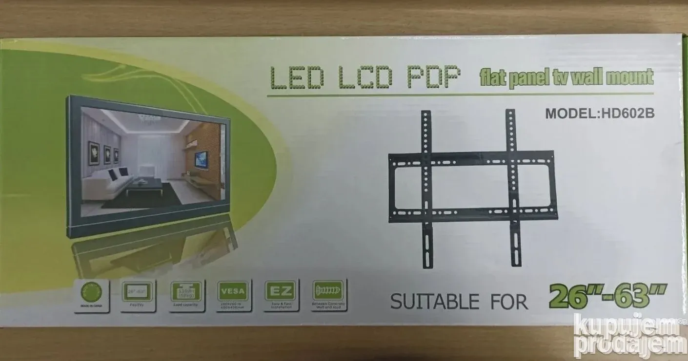 Ultra tanak dizajn omogućava da TV stoji blizu zida, dajući moderan i uredan izgled prostoru. Nosač je kompatibilan sa većinom televizora i monitora dijagonale od 26 do 63 inča, uz maksimalnu nosivost od 50 kg. U kompletu dobijate sav potreban montažni materijal, uključujući tiplove, šrafove za zid i šrafove za TV.