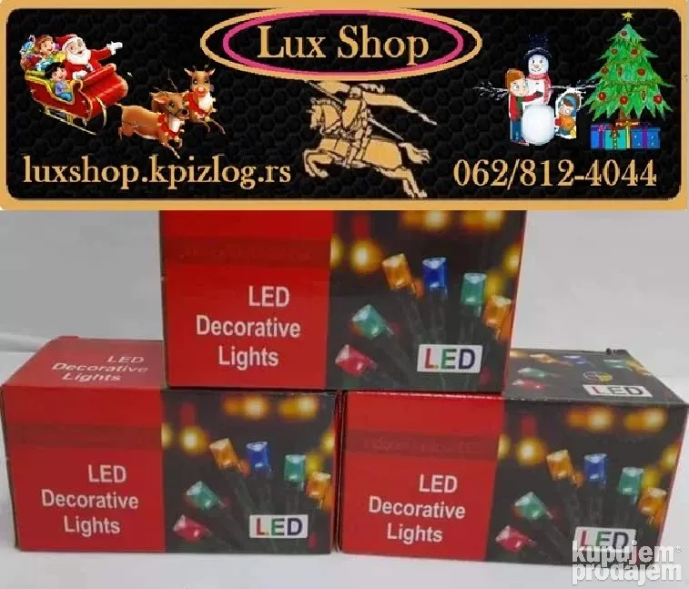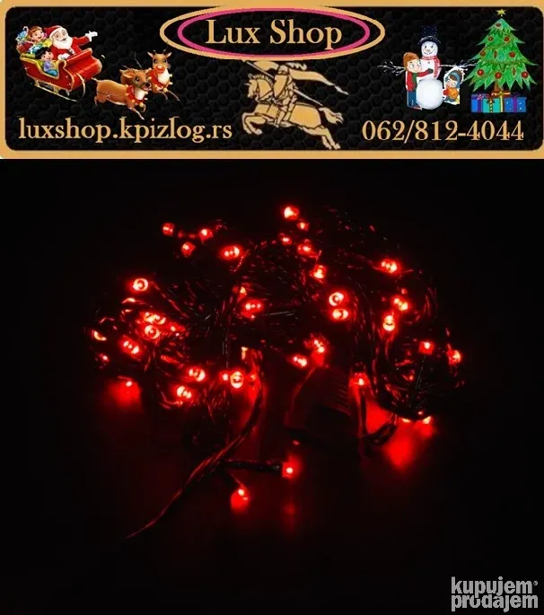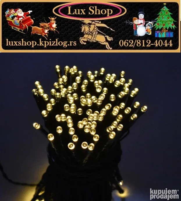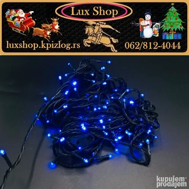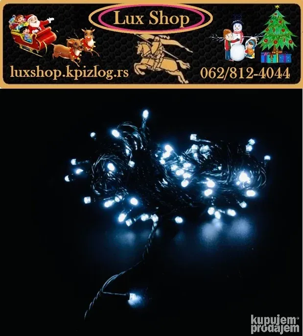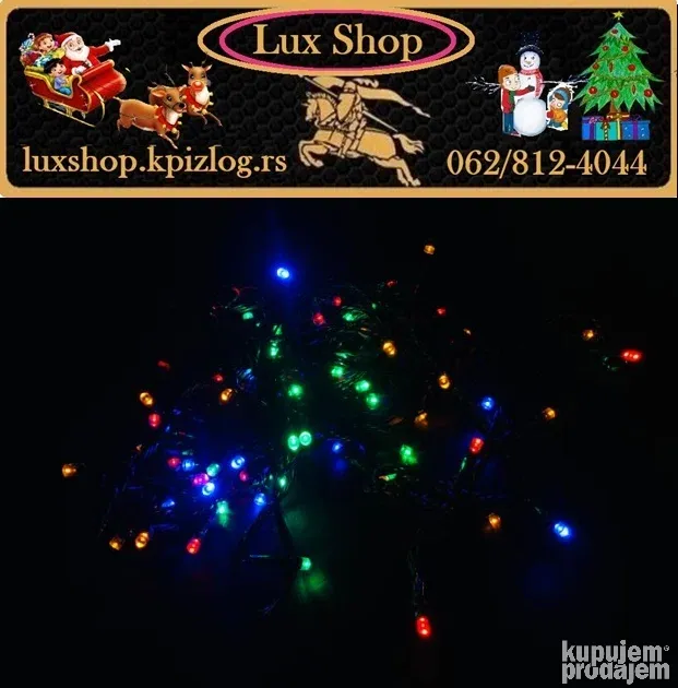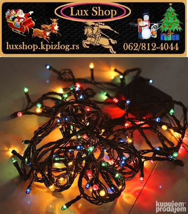 Novogodišnje lampice 10m/100 LED u 10 boja donose magičnu prazničnu atmosferu u svaki dom. Sa zelenim kablom, daljinskim upravljačem i mogućnošću podešavanja različitih režima treptanja i svetljenja, ove lampice su idealne za jelke, terase, ograde i unutrašnju dekoraciju.