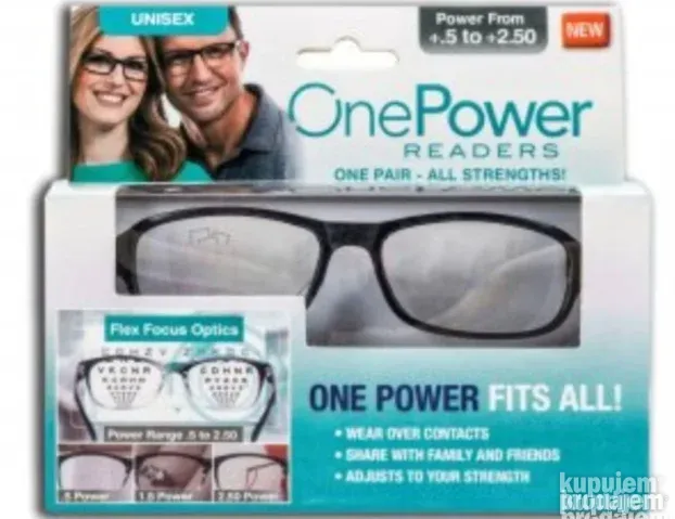 Upoznajte naočare sa fleksibilnim fokusom One Power, revolucionarno rešenje za jasan vid prilagođeno vašim individualnim potrebama. Ove univerzalne naočare koriste naprednu Flex Focus optičku tehnologiju kako bi se automatski prilagodile različitim dioptrijama, čineći ih savršenim za svakoga.