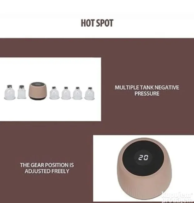 Ovaj pametni električni masažer sa 12 brzina i funkcijom zagrevanja poboljšava cirkulaciju i smanjuje bol. ‍♀️ Podesiv pritisak i 6 različitih čašica za kompletnu masažu tela!