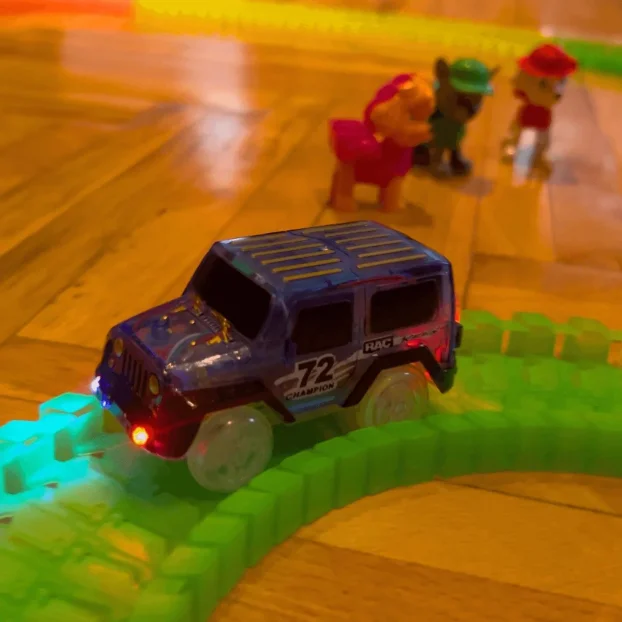 • Svetli u Mraku: Staza poseduje magičnu osobinu da sija u mraku, stvarajući nezaboravnu atmosferu i dodatno oduševljenje kod mališana.